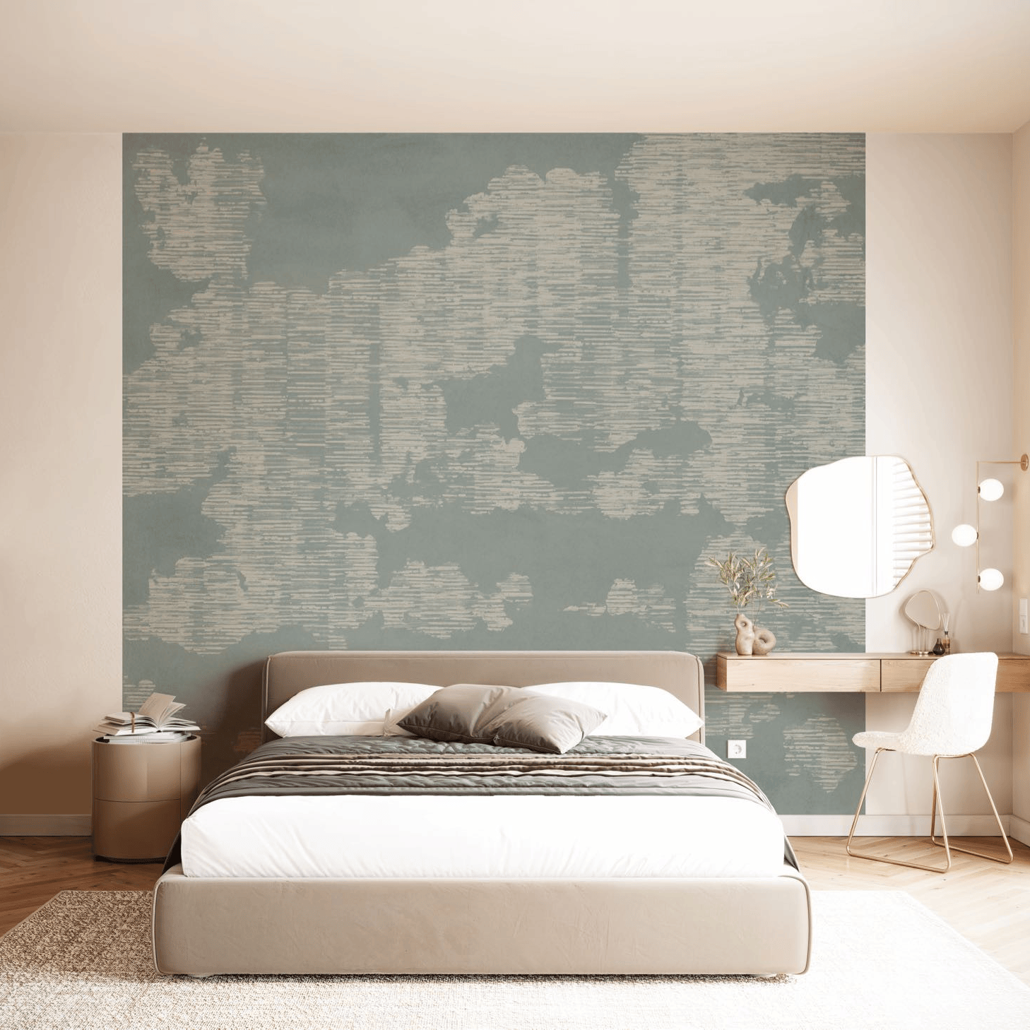 Der gedeckte Blauton schafft in Verbindung mit den Wolken eine beruhigende Stimmung. Deshalb eignet sich das Motiv besonders im Schlafzimmer.