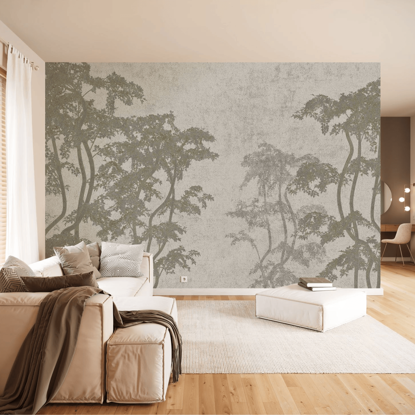 Das elegante Motiv in Grau-Beige Tönen vereint die Natur mit einem hohen Anspruch an Design.