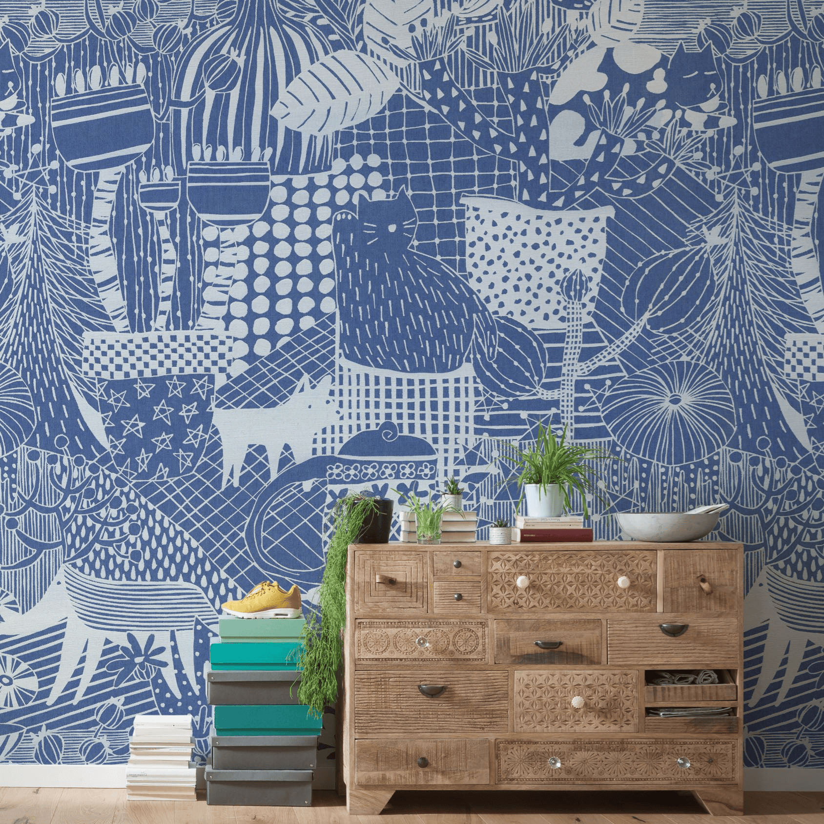 Was gibt es hier nicht alles zu entdecken. Das blaue Kindermotiv schmückt die Wände kleiner Entdecker*innen auf kunstvolle Weiße. Ob süße Tierchen, Sterne oder Blätter. Nicht nur Kinder werden sich an diesem Design nicht sattsehen können.